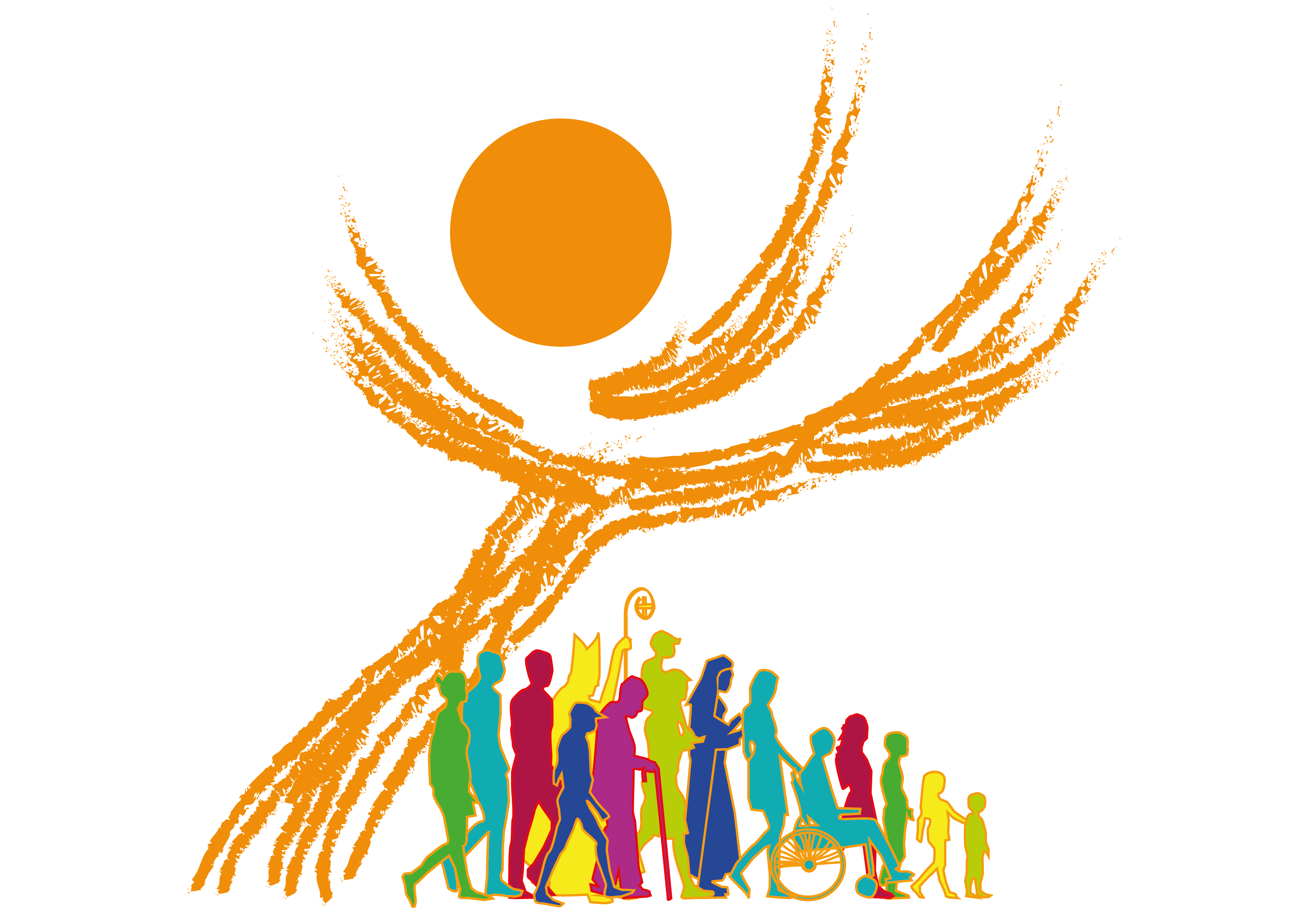 El logo representa el llamado de toda la Iglesia a vivir la comunidad, la misión y la vocación, con un acento especial en los jóvenes, quienes son protagonistas del presente y del futuro eclesial.